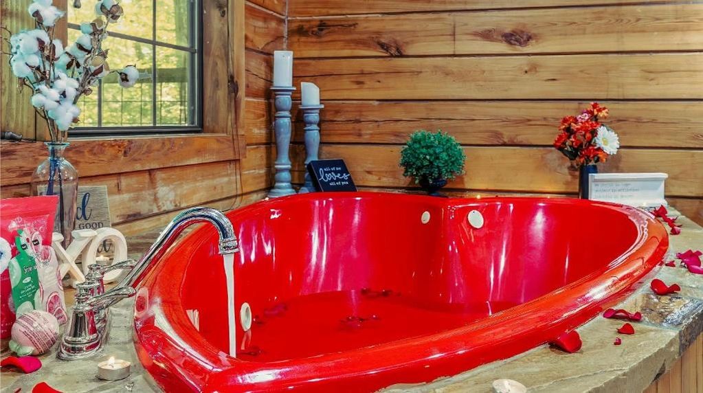 Rekindle the romance at "Rustic Rendezvous," one of our suites featuring a heart-shaped spa tub!